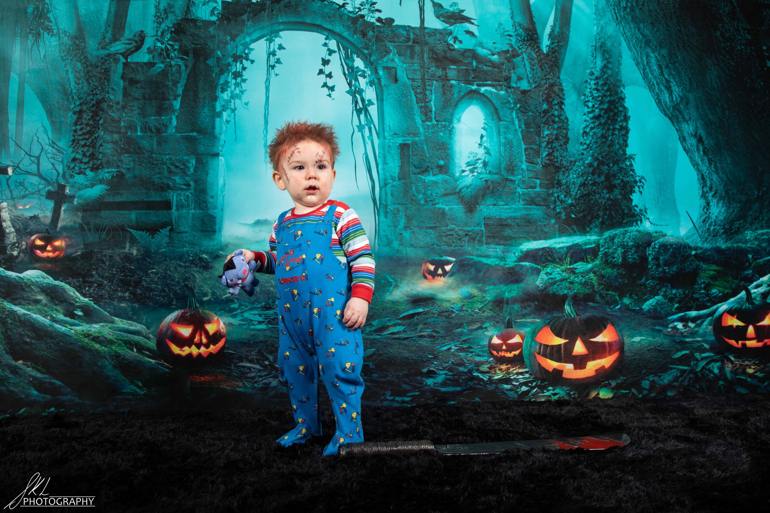 Props are available but costumes must be your own. Props for Halloween shoots include a smoke machine, giant spider, pumpkins, spooky headbands and more